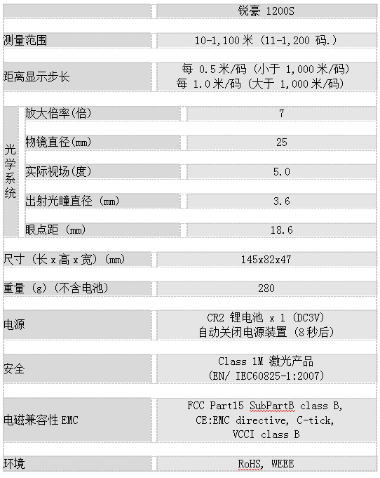 - 產品特性• 2種測量模式可供選擇(目標優先切換系統)單次測量獲得復數結果 ——在綠樹環繞的環境中,有助于測量到球桿(高爾夫)之間的距離。單次測量獲得復數結果 ——有助于在茂密叢林中狩獵使用。• 背光液晶顯示屏★高品質7倍單筒望遠鏡采用多層鍍膜,使視野明亮清晰。• 打開電源后,簡單的一按式測量。• 屈光度調節功能。• 防水(不深于2米,5分鐘),但不要在水中使用;電池匣具有抗水功能。應用: