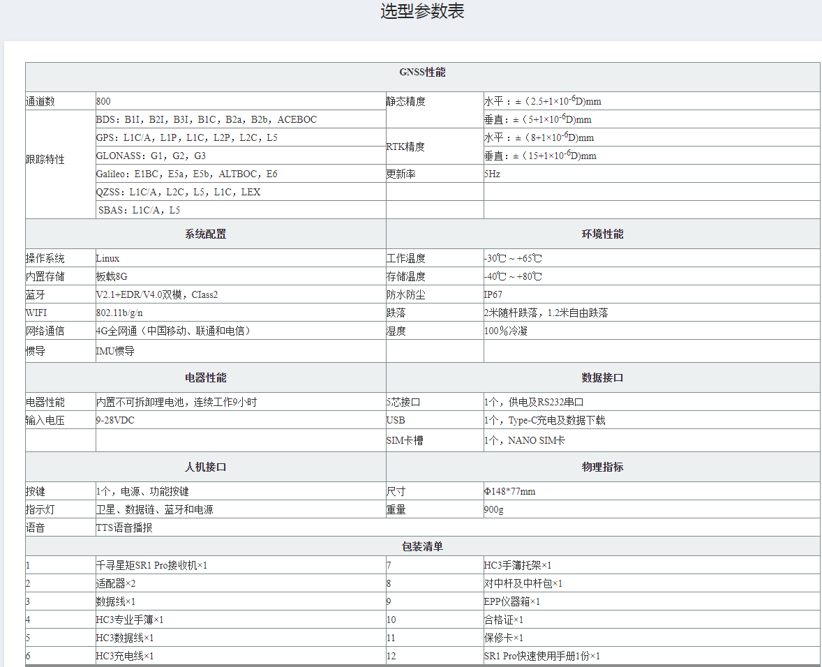 - 產品描述:千尋星矩SR1Pro網絡慣導RTK接收機,內置千尋知寸五星十六頻服務、高精度慣導模塊, 提高設備的抗遮擋能力,搜星多,信號強,復雜環境下有良好的表現,同時其簡潔、緊湊的設計,一手掌握。